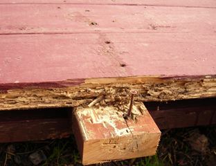 デッキ材と下地材の接していた所から腐っていきます