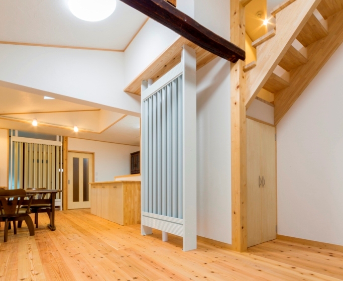 2階にあがる階段も直線階段から踊り場を設けたL形階段に